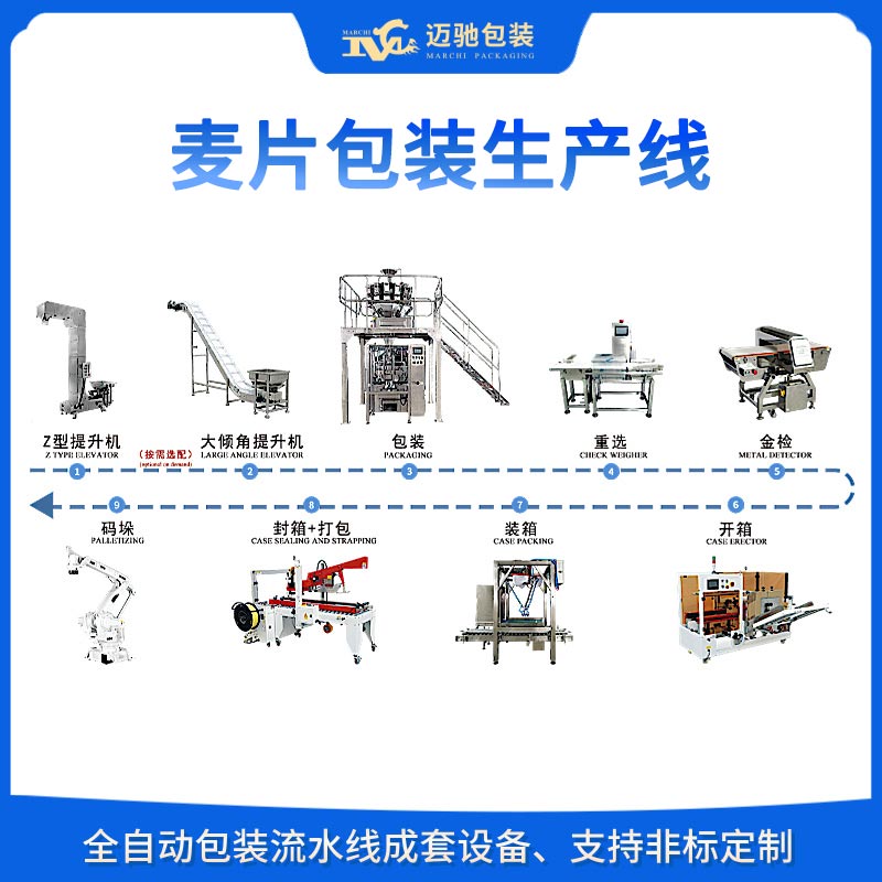 產品別稱:麥片自動包裝生產線,麥片包裝機生(shēng)產線,麥片包裝全自動生產(chǎn)線